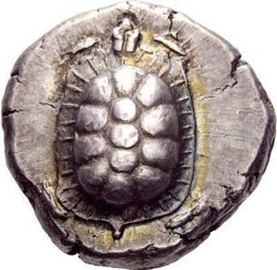 Aegina and its turtle. Silver stater, ca. 445-431 BCE.