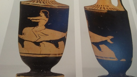 There were many tales in antiquity of people being rescued by dolphins such as Arion, the purported inventor of the dithyramb, which, according to the Greek philosopher Aristotle, was the origin of Greek tragedy, who after being kidnapped by pirates escaped on the back of a dolphin or so the story goes.