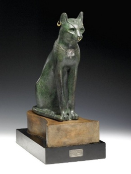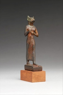 Egyptian cat goddess Bastet, ca. 664-30 BCE. Made of leaded bronze. Metropolitan Museum of Art.