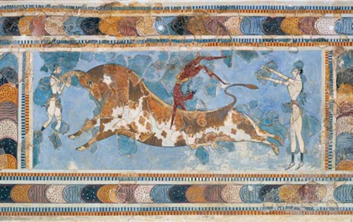 The “Bull-leaping fresco” from the East Wing of the “Palace” of Knossos, ca. 1600-1400 BCE.
