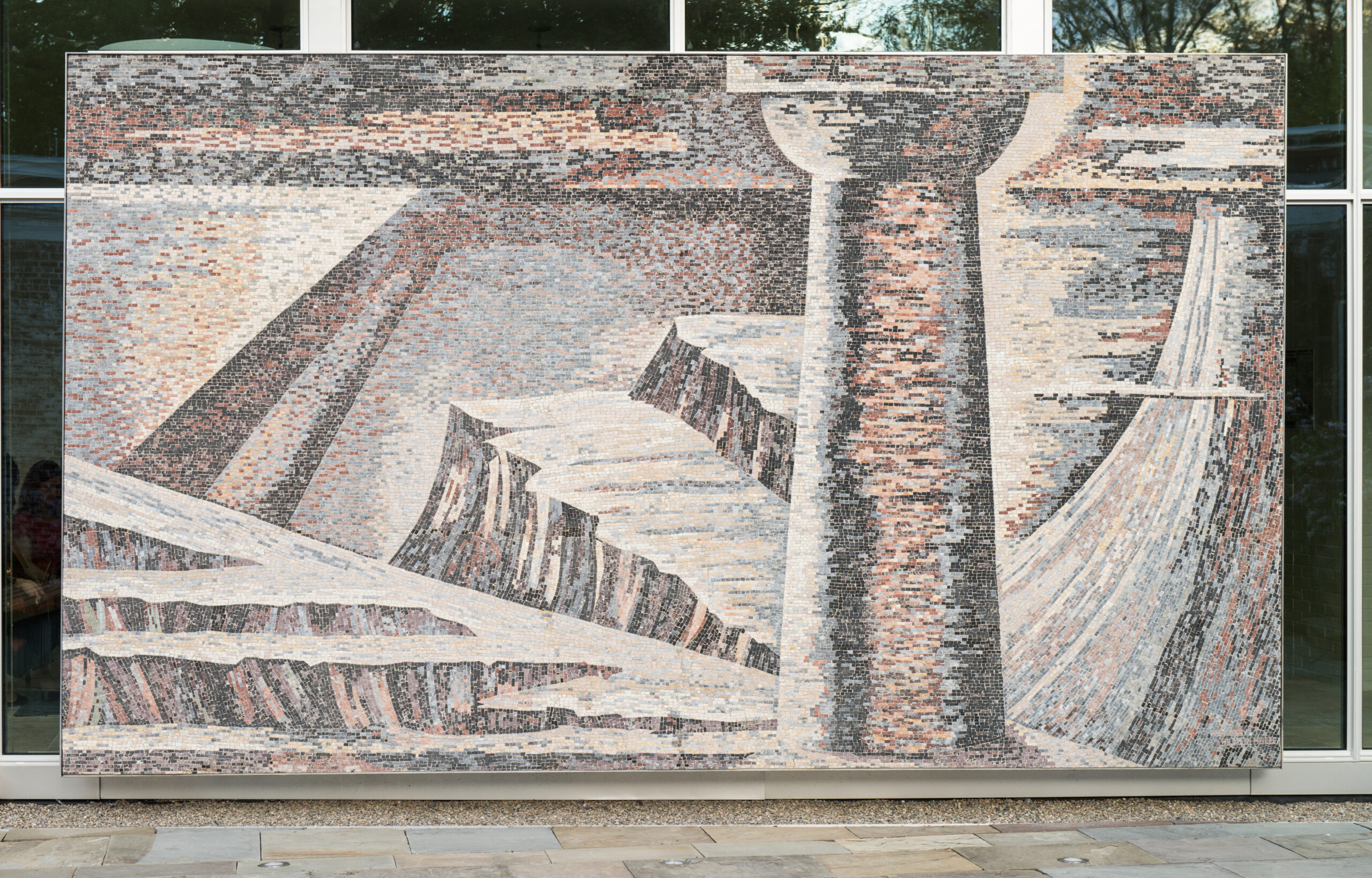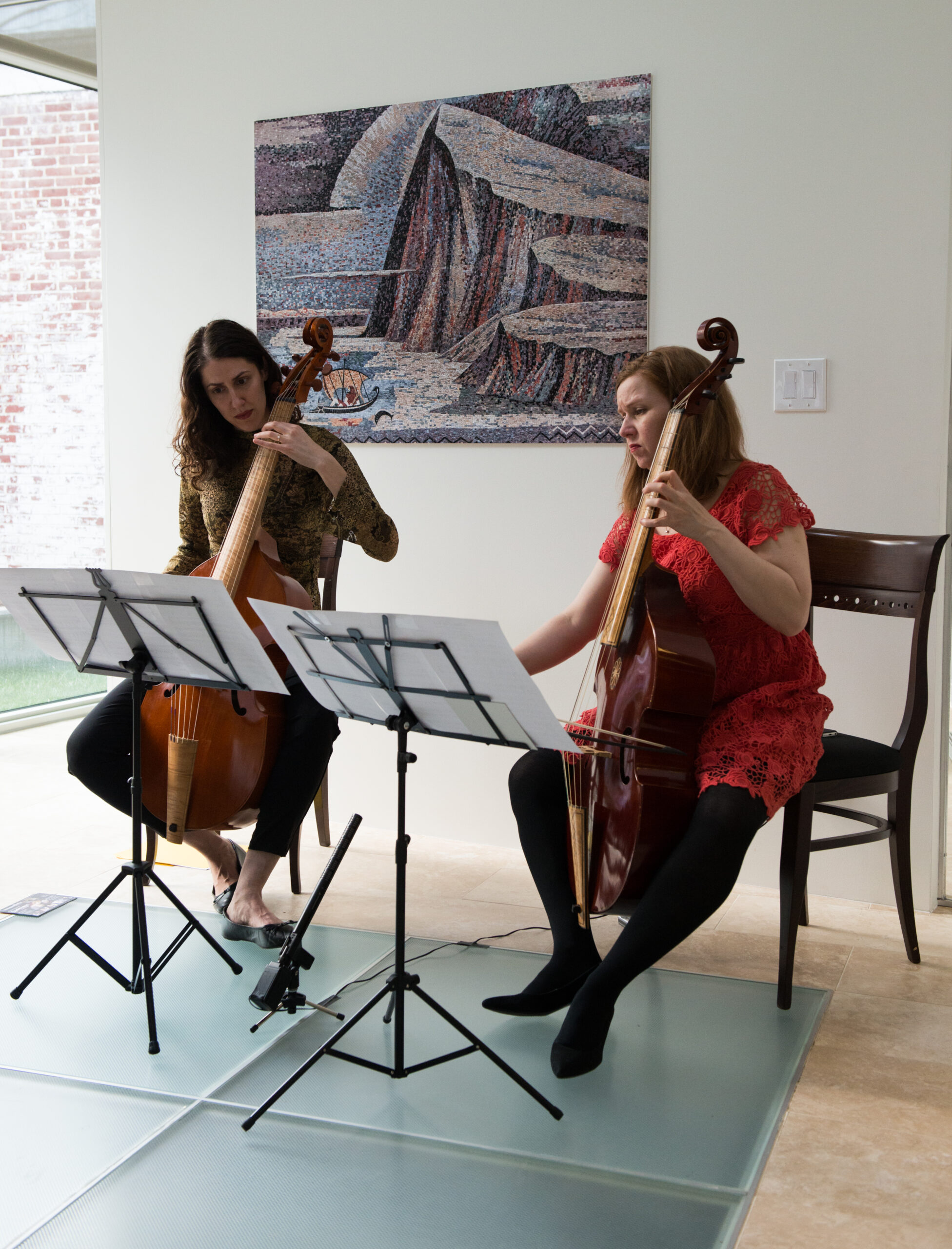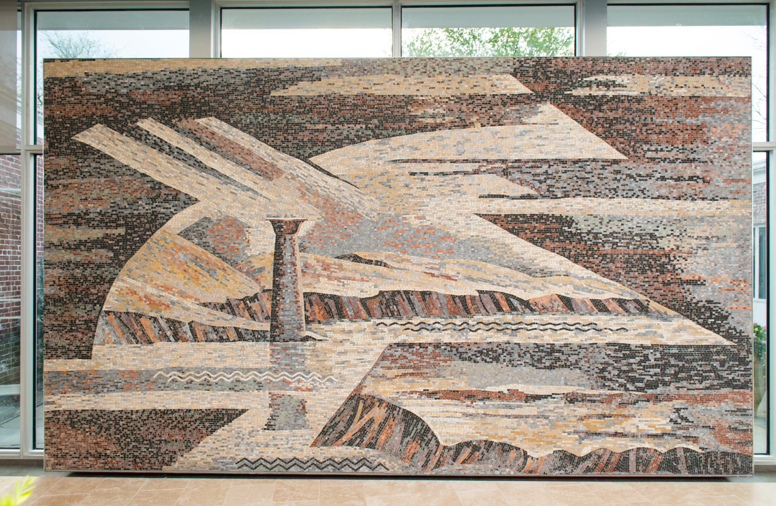 On Saturday, April 26, 2014 the Art Deco Murals of Hildreth Meière were in the spotlight. The Modern Greek Studies Program of the Classics Department at Georgetown University and the Center for Hellenic Studies in Washington, D.C. presented a program of lectures, held at Georgetown University, on the mosaics, their design and their restoration. Later in the evening, the Center for Hellenic Studies hosted a small gathering to welcome the Meière Mosaics to their new home. The courtyard was filled with friends of the CHS, who had the opportunity to admire the panels and enjoy the new spaces of the Center. The music to accompany the home coming of the two panels was composed by Eric Shimelonis, a well-known conductor and multi-instrumentalist in Washington, D.C.